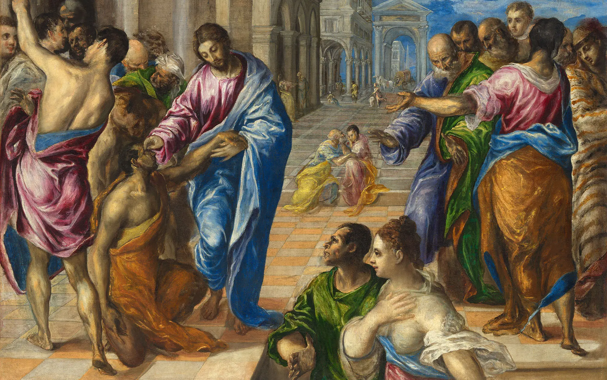 Jezus, przechodząc, ujrzał pewnego człowieka, niewidomego od urodzenia. Splunął na ziemię, uczynił błoto ze śliny i nałożył je na oczy niewidomego, i rzekł do niego: «Idź, obmyj się w sadzawce Siloam» – co się tłumaczy: Posłany. On więc odszedł, obmył się i wrócił, widząc.